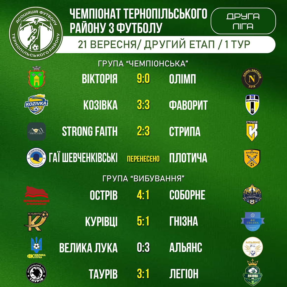 Друга ліга / Результати 21 вересня