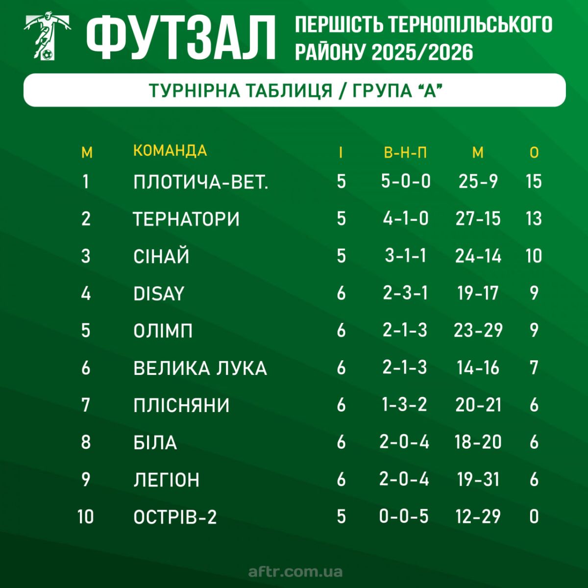 Триває Чемпіонат Тернопільського району з футзалу, організований Асоціацією футболу Тернопільського району. Змагання проходять у двох групах, а команди демонструють яскраву та безкомпромісну боротьбу!
