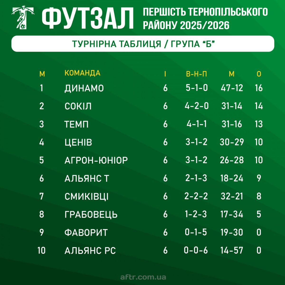 🏆 Група "Б" – лідирує "Динамо" (Красівка)