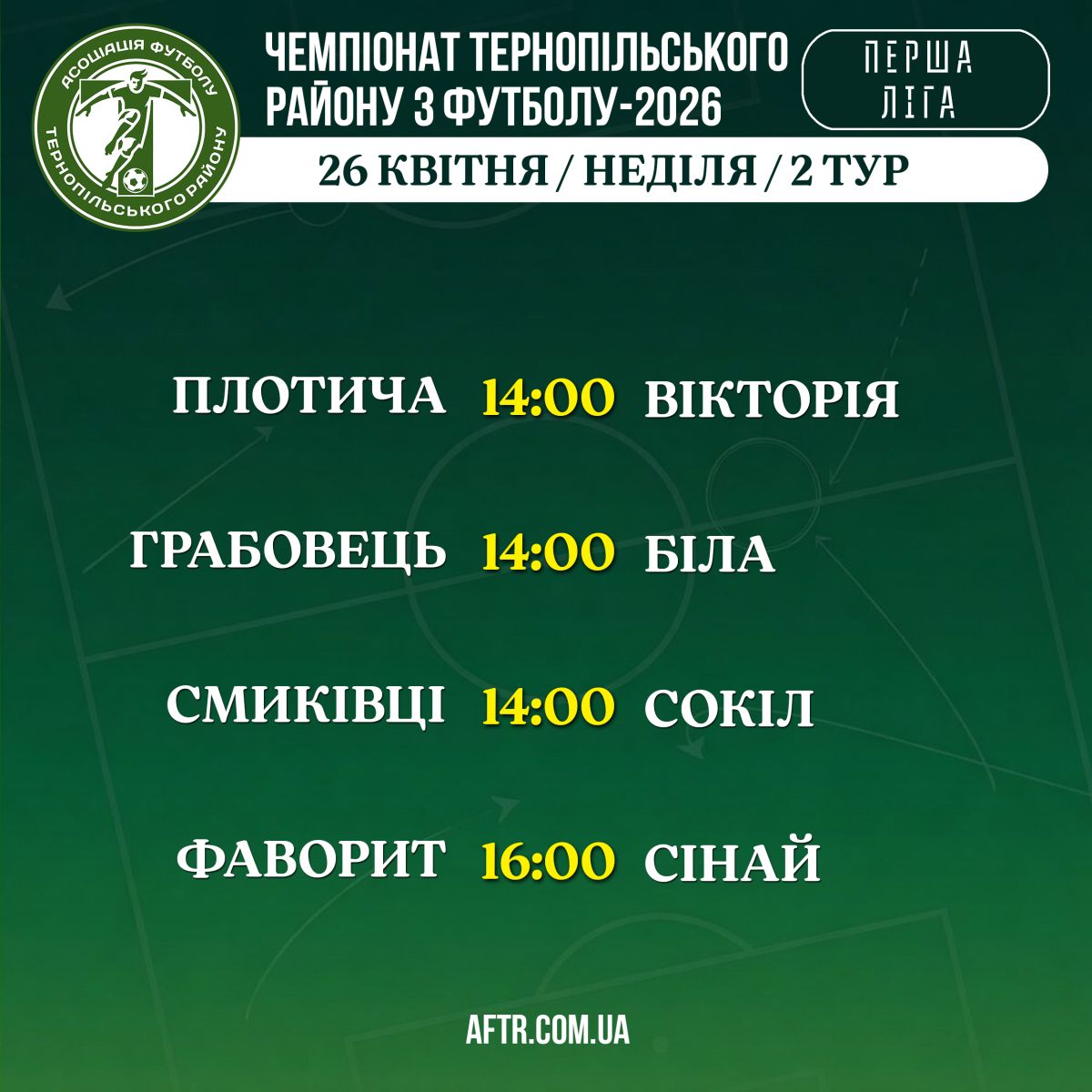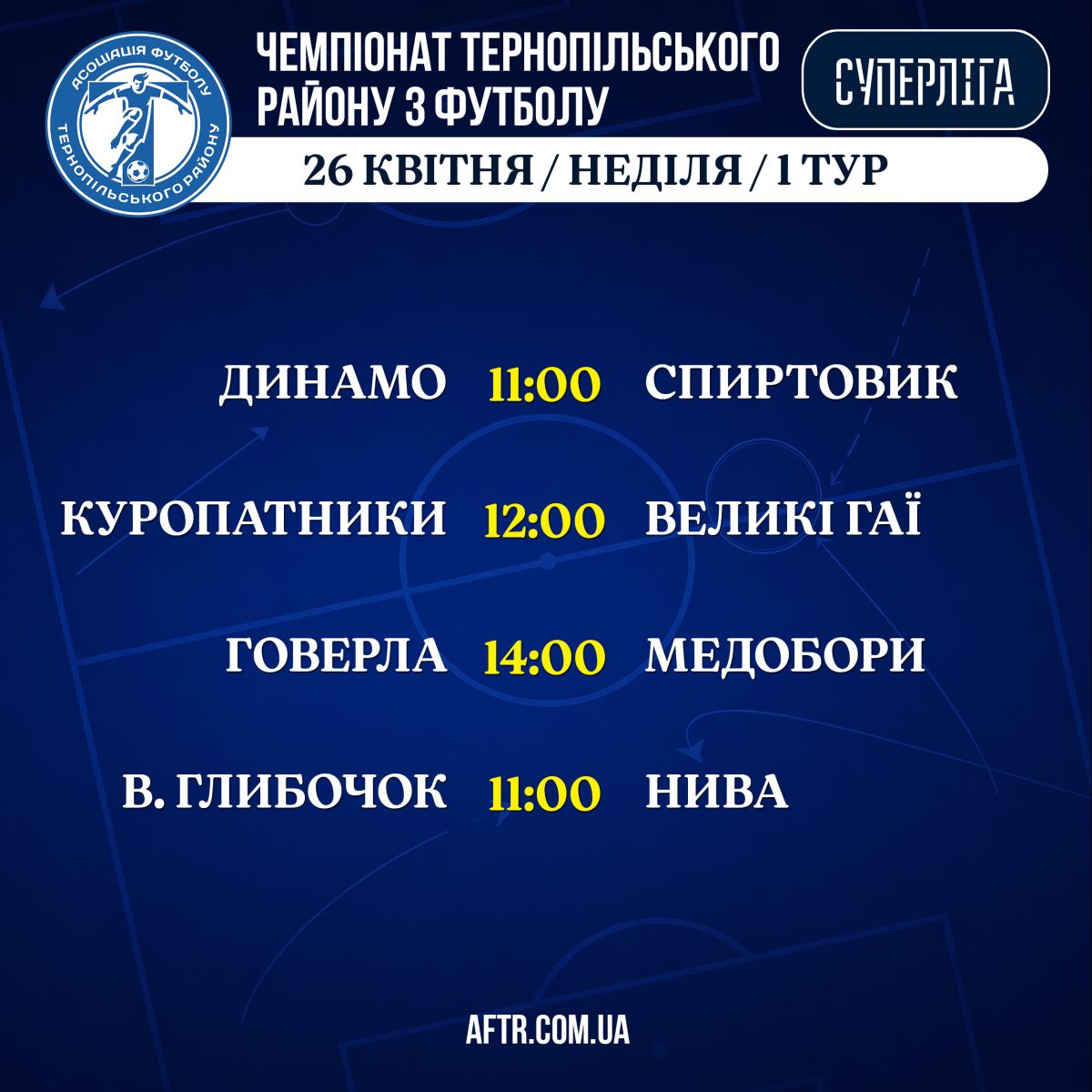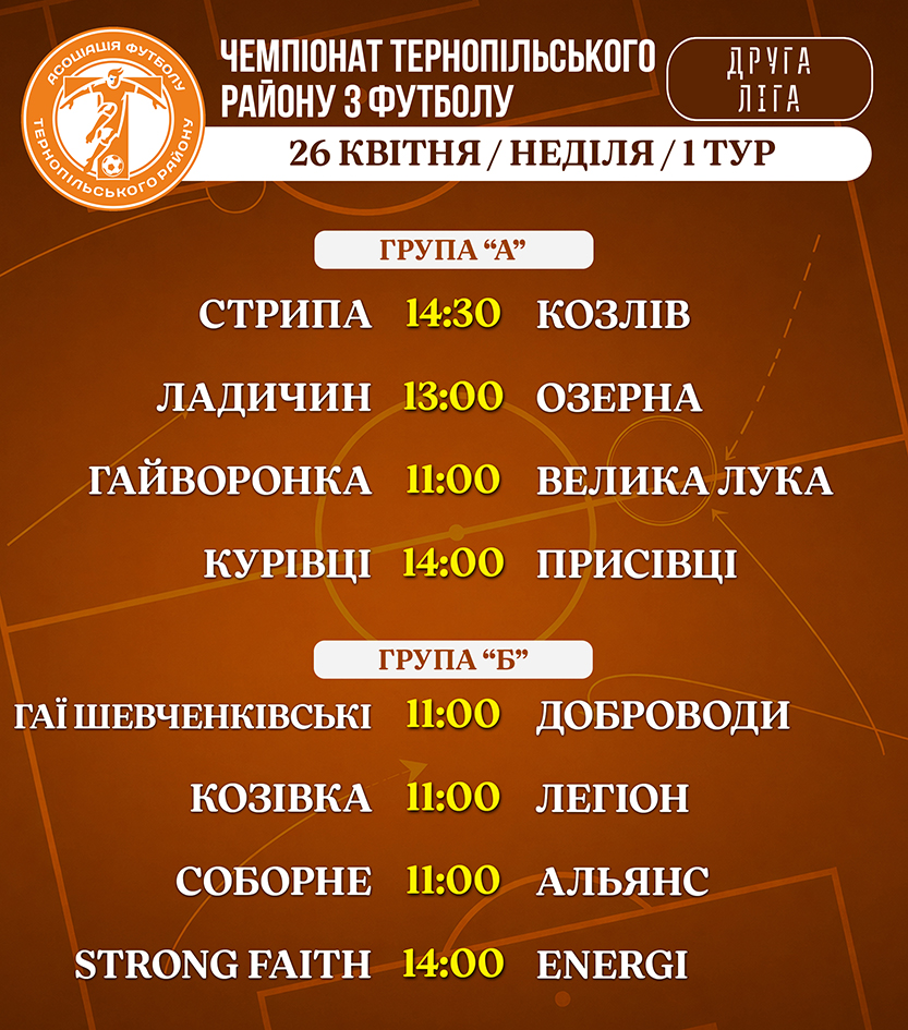 Розклад матчів Чемпіонату Тернопільського району на 26 квітня (неділя): ▶️ СУПЕРЛІГА ▶️ Розклад матчів / 26 квітня / 1 тур